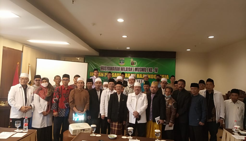 Kota Serang, Asatuonline.id – Ikatan Persaudaraan Haji Indonesia (IPHI) Provinsi Banten Menggelar Muswil Ke-lV Tahun 2002, dengan tema Memperkuat Persaudaraan Para Haji Provinsi Banten Untuk Memperkokoh Persatuan Dan Kesatuan Umat, acara ini berlangsung di salah satu hotel bintang empat Kota Serang, Banten, Rabu (27/07/2022) Ketua Umum IPHI H. Erman Suparno dalam sambutanya berharap IPHI menjadi organ yang produktif, menjadi bagian dari pembangunan masyarakat, serta menjadi teladan untuk persatuan dan kesatuan bangsa. “IPHI hadir di tengah masyarakat, menjadi teladan untuk persatuan dan kesatuan bangsa dan ia berharap organ ini bsa produktif serta berperan aktif dalam pembangunan di masyarakat,” harap Ketum Di sela Muswil Ketum IPHI ini pun mengukuhkan kepengurusan IPHI Provinsi Banten Periode 2022-2027 dengan menetapkan H. Hizbullah sebagai Ketua Dalam kesempatan yang sama Ketua terpilih H. Hizbullah mengatakan bahwa akan membawa IPHI menuju lebih baik, melaksanakan instruksi pimpinan pusat serta menjalankan program-program yang sudah berjalan. “Saya mengucapkan terima kasih kepada ketum, jajaran pengurus Provinsi, saya akan menjalankan program yang sudah berjalan, melaksanakan instruksi pengurus pusat serta akan membawa organ ini menjadi lebih baik,” ucapnya Hadir dalam acara Sekjen Ir, H Bambang Irianto, beserta jajaran pengurus pusat.